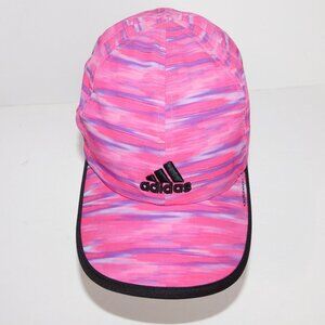 This womens adjustable Adidas Adizero Climacool Pink Purple Running Cap Hat is in great clean condition. Hat has adjustable strap on the back. 87% Polyester - 13% Spandex - hand wash. This light weight moisture wicking running cap is perfect to keep you cool and and stylish while getting in your run.