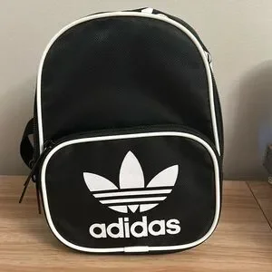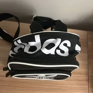 This is an Adidas Adjustable Two Pouch Mini Backpack. It has been lightly used, and is in great condition. It has adjustable straps to suit whichever length you would like, and is perfect for everyday use.
