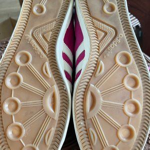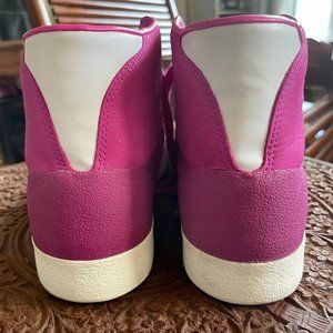 Magenta suede, like new condition, awesome shoes but they are 1 size too big and kinda look like clown shoes on me. Be a style star at school this year with these super hard to find high tops!