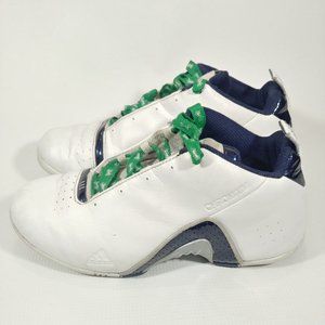 These pre-owned Adidas basketball shoes are in great condition. These retro shoes are the perfect thing to propel you down the court in order to deke out the defense and score a layup. They could also pose as a sweet addition to any outfit.