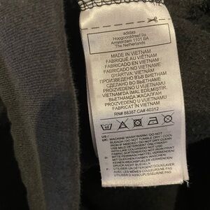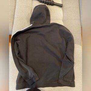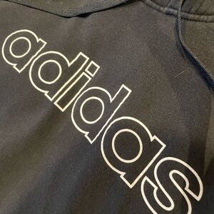 Adidas black hoodie featuring iconic white stripes. Comfortable and stylish.