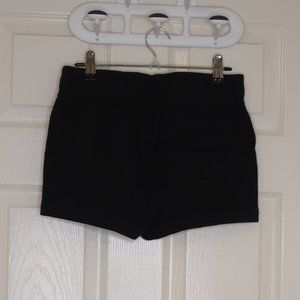 Black shorts with white logo from Adidas in size XS. Elastic waist, mid-low rise, jogging pant material.