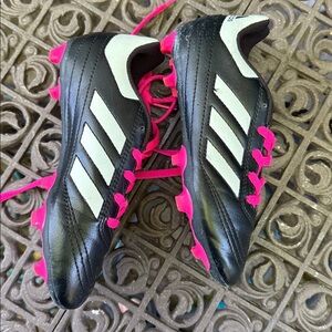 Adidas Black and Pink Soccer Shoes Soccer Cleats Footwear. Girls 13K