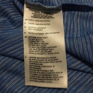 Very good preowned condition, blue striped racer back tank top by Adidas. A beautiful top purchased for cycling. Lightweight and comfortable, this top is designed to endure high performance activity. From 2014, I believe according to the tag.