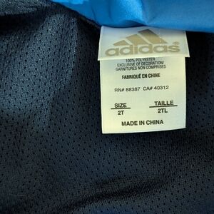 Stay dry and stylish with this Adidas raincoat, featuring a vibrant blue color with black accents and the iconic Adidas stripes on the sleeves. Designed for rainy days, this raincoat combines functionality with a sporty aesthetic, making it perfect for outdoor activities.