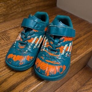 Adidas ortholite Baby toddler Messi EL Performance Velcro Shoes, green orange and white toddler size 7. Ortholite.