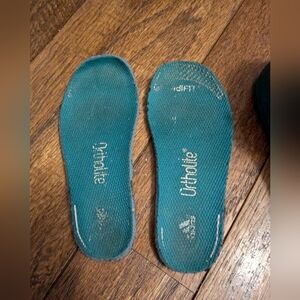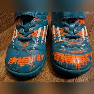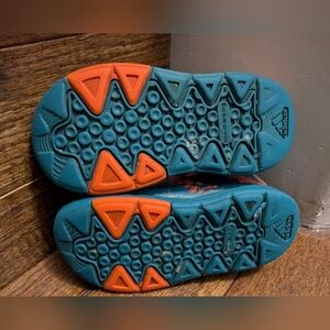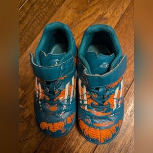 Adidas ortholite Baby toddler Messi EL Performance Velcro Shoes, green orange and white toddler size 7. Ortholite.