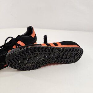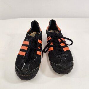 Extremely rare adidas C-100 sneakers in a size 6. Size sticker says made in Canada. They are black suede with orange accents. Very similar to the original adidas Samoa. The soles have very little wear. The midsole is made of a hard plastic so it is vulnerable to breaking; they look great now but are no longer meant to be worn. Extremely rare shoe from 1980.