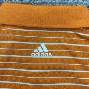 Adidas CLIMALITE Golf Shirt Men Medium M Orange Striped 100% Polyester Golfing