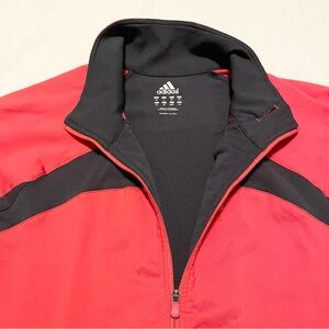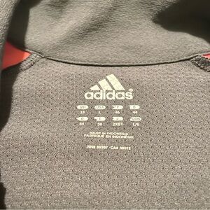 This zip up is pre-owned and in used condition. The care tag is cut off. There is some minor wear to it. Please see all photos for exact item.