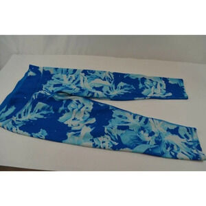 These Adidas Climalite leggings have an awesome bright blue splash of color that just makes you want to run fast. Unfortunately they were too small around my thighs and so I never wore them. They are a size Medium and I believe fit true to size. Waist is 14" when lying flat but of course has lots of stretch. Thigh 8.5" lying flat. Inseam 21". Worn maybe once, still in fantastic condition. Good lightweight crops for yoga, running or the gym.