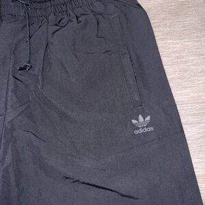 Cozy and stylish Adidas sweatpants in black with bold red asymmetrical 3-stripes and the Adidas Trefoil logo on the lower leg. Designed with a regular fit, drawcord elastic waistband, side pockets, and cuffed hems for comfort. Made from soft cotton-blend fleece — perfect for keeping warm while lounging, traveling, or adding a sporty edge to your everyday outfit.