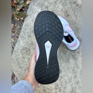 Feel light, fast and free. When you're ready to pick up the pace and train for courses up to 10 kilometres, these adidas running shoes support your efforts with comfort. They're light from top to bottom with a soft mono mesh upper and stable LIGHTMOTION midsole. On the track or pavement, an Adiwear outsole provides durability and grip.