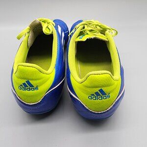 For sale is a pair of Adidas F50 Soccer Cleats in men's size 10 (US). These cleats feature a blue and yellow colorway with a lightweight synthetic upper for speed and agility. Designed for firm ground (FG) surfaces, they provide excellent traction and ball control.