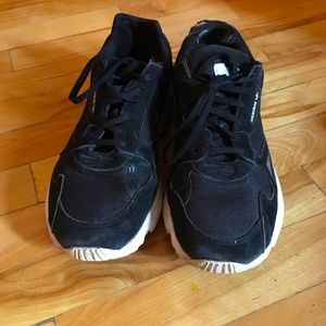 adidas black and white sneakers. Reflectors on side. They are used (little damage on the inner heel- see photo)