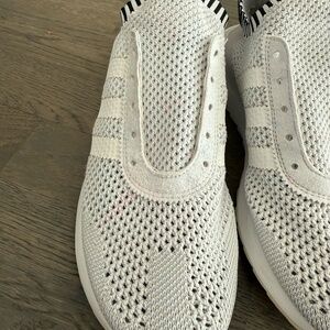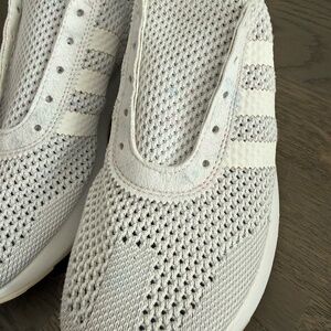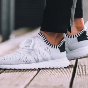 Adidas Primeknit: The upper is a single piece of woven material that adapts to the foot, providing a snug, flexible, and comfortable fit.