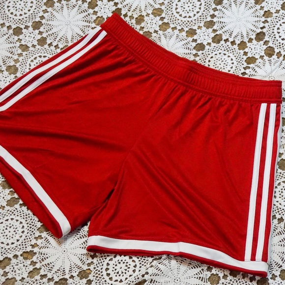 Brand-new Adidas soccer shorts. I wear these in a size medium for my workouts, and they're hands-down the most comfortable workout shorts ever! They're long enough that you always feel covered, and are the right mix of baggy and fitted.