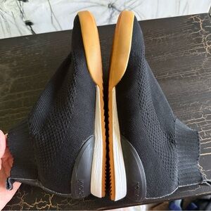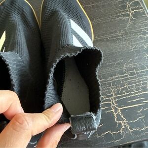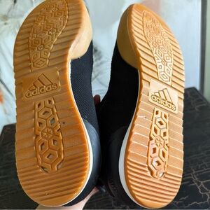 Stylish Adidas sneakers with a black knit upper and white stripes. Features gum soles for excellent grip.