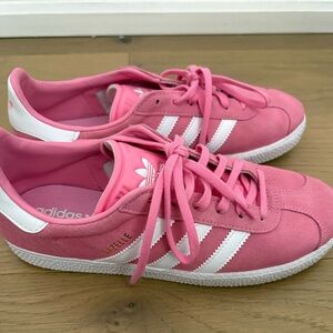 Adidas Gazelles Pink and White Ortholite Sneakers