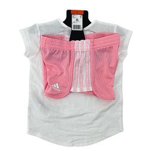 Adidas | Girl's Shirt & Short Set | 2 Pieces | White & Pink | Various Sizes