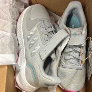 Step into comfort and style with these Adidas sneakers, featuring a sleek gray design with vibrant pink accents. The mesh and synthetic upper ensures breathability, while the cushioned sole provides support for all-day wear. Perfect for both athletic activities and casual outings, these sneakers offer a modern, streamlined silhouette.