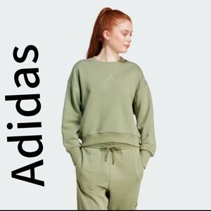 Stay cozy and stylish in this Adidas cropped sweatshirt! With a trendy two-tone sage and mint color block design, it’s the perfect blend of sporty and cute. Features the classic Adidas logo on the front and bold varsity-style lettering on the back.