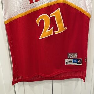 Adidas Hardwood Classics Atlanta Hawks Dominique Wilkins #21 Jersey. Size Mens XXL. Good pre owned condition with a few small marks on the numbers/stitching on the front and back of jersey. Please see photos, reasonable offers welcome!