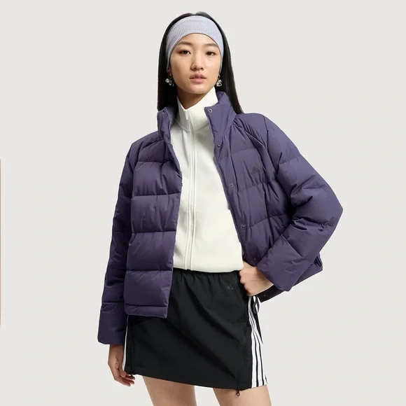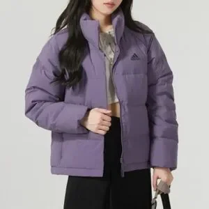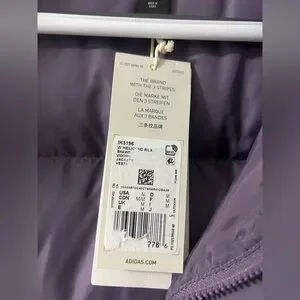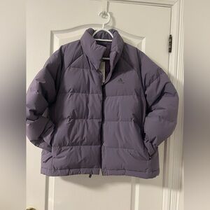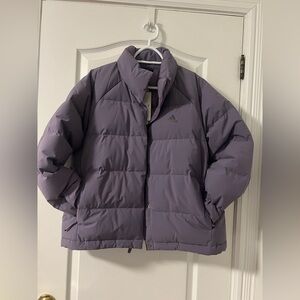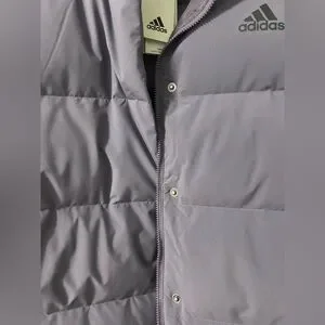 Cozy Adidas quilted jacket in a soft lavender hue. Ideal for chilly days.