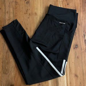 Pair of adidas aeroready primegreen high rise 7/8 leggings with mesh and pockets and stripes down the size. Size large, perfect for working out or relaxing at home in!
