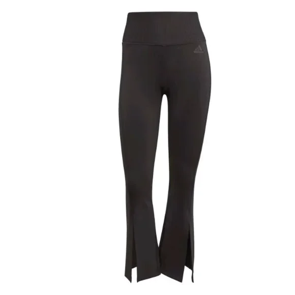 Looking for go-to pants that effortlessly take you from your gym class commute to your favorite hot spots? Say hello to the Hyperglam Flared Rib Pants. With a body-hugging fit and '70s cut, the throwback silhouette will flatter and support every move you make. Using sweat wicking or absorbent materials, adidas AEROREADY products keep you feeling dry as you move. In other words, you can hit your to-do list in style, without stress. You'll also rack up extra style points with these modern details: A flattering ribbed high-rise band helps you move confidently through your day, and the insta-worthy front slit and sweetheart cut line effortlessly takes this staple to the next level.
