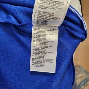 Blue zip-up Adidas sweater/jacket with the ICSF (Italian Canadian Sports Federation) logo. In excellent condition. Pit to pit 24", collar to hem 29". No size tag.