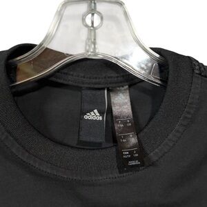 Made from a soft cotton blend, it features a breathable mesh on the sleeves and bottom hem for a unique style and optimal ventilation. The Adidas logo is subtly placed on the chest and the iconic three stripes are on the back. It has a long fit and a classic crewneck.