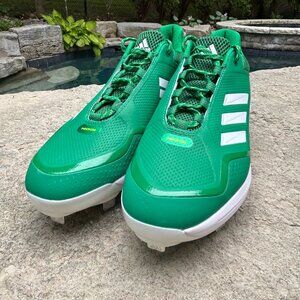 A new pair of size 13 Adidas Icon 7 Baseball Cleats including all tags but without a box. The color pattern is Green and White. Model S23859.