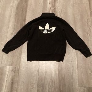 Adidas Jacket black with white logo and lettering. Great condition. Fits medium to large