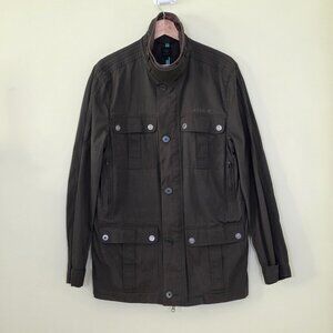 Adidas Jacket Men M Army Green Almost Vtg LS Pockets Two Way Zip Cotton Utility