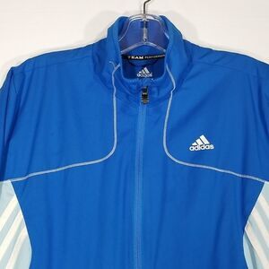 Adidas Jacket Women's Large Team Performance Full Zip Long Sleeve Blue White