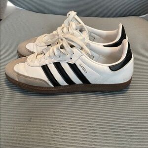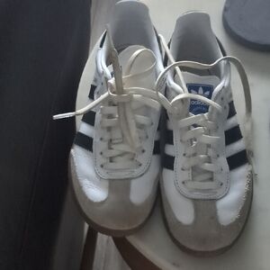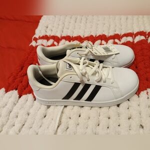 Classic white sneakers with green accents. Perfect for active kids. Durable and stylish design.