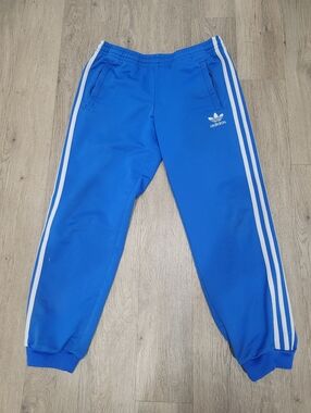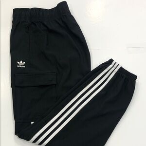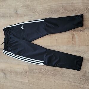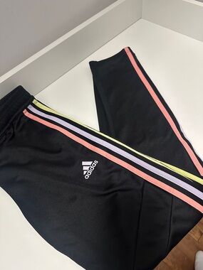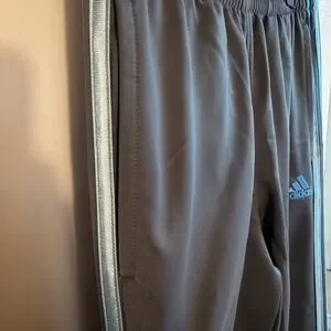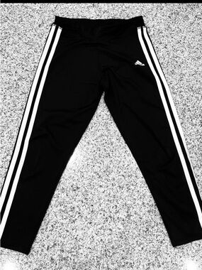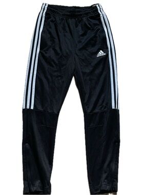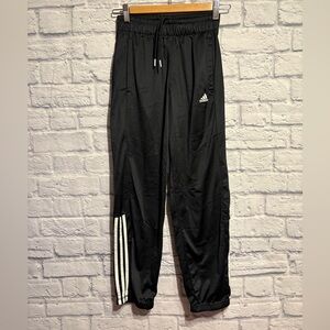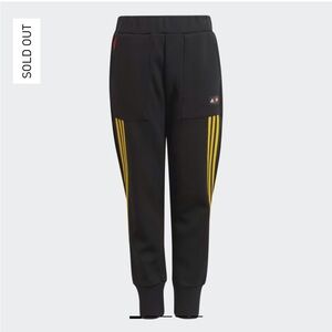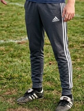 Sleek black joggers with a vibrant blue Adidas logo. Perfect for active kids.