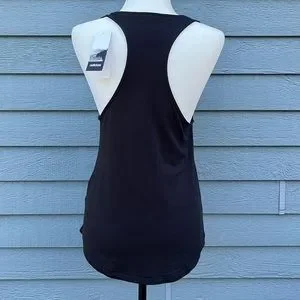The fit is not too tight and not too loose — just perfectly comfortable. The high neck keeps things covered up front, and the racerback shows off your sports bra while also making sure you have a full range of motion.