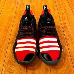 In like new condition, only worn twice. They look a bit like the Adidas Predator line. These are initially basketball shoes but can be worn daily. They offer great heel and foot support and have ankle padding on the sides for added cushioning. The sole is also very firm all around which makes it a very balanced shoe.