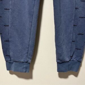 Experience relaxed comfort with these Adidas men’s joggers in a soft blue hue, size large. Featuring the iconic Adidas logo print along the side stripes, these joggers offer a sporty style perfect for lounging or light workouts. Designed with a drawstring waist and cuffed ankles, they provide an adjustable, cozy fit. Note a minor mark on the back, but overall in good condition and ready for casual wear.