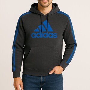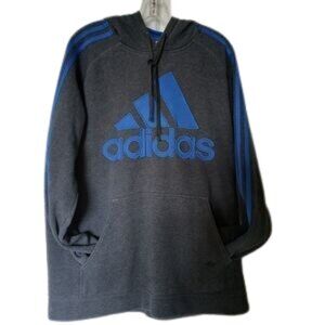 Adidas Men's Gray/ Royal Blue 3 Stripe Pullover Hoodie Size Large