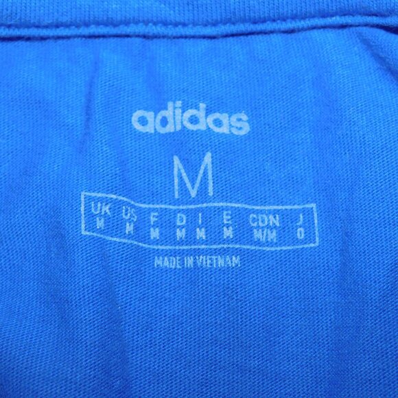 This Mens Medium Adidas Blue white All Over Print Spellout Fave Crewneck T Shirrt is in great clean bright condition. Shirt is 100% Cotton - Machine washable