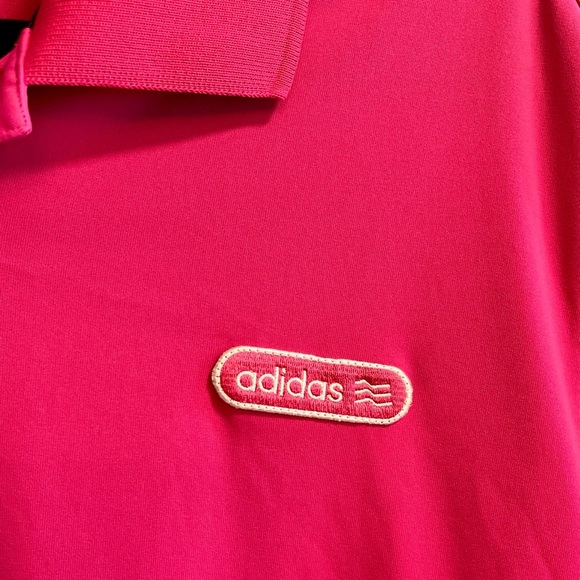 Experience the perfect blend of style and comfort with this Adidas bright pink short sleeve patch logo golf shirt. Crafted for casual and athletic wear, its pink colour and classic polo design make it a standout choice. Made specifically for the golf course, but really is Ideal for any occasion.