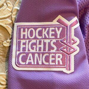 Show your support for the Montreal Canadiens while raising awareness for a great cause with this Adidas NHL 'Hockey Fights Cancer' hockey jersey. Made with high-quality materials, this jersey features the iconic Canadiens logo on the front and is designed in white and purple, the official colours of the team's Hockey Fights Cancer campaign. It comes in size L, perfect for any fan looking to show their support. This jersey is ideal for any NHL fan who wants to look stylish while supporting a great cause. It's perfect for wearing to games or just as casual wear. Get your hands on this limited edition jersey today and show your support for the Montreal Canadiens and the fight against cancer.