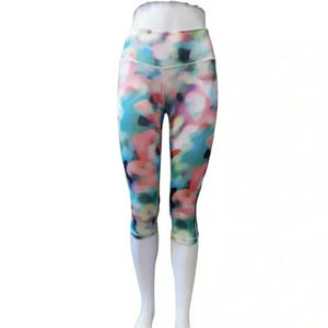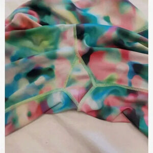 These multicolour green and pink adidas Capri length leggings feature three stripes halfway down the side of each leg.
