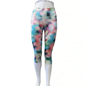 These multicolour green and pink adidas Capri length leggings feature three stripes halfway down the side of each leg.