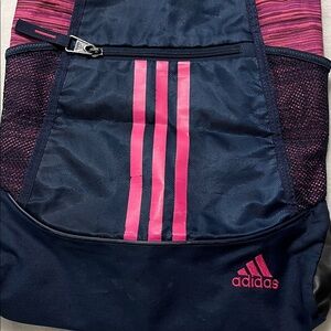Stylish Adidas backpack with vibrant pink stripes. Perfect for everyday use. Box6