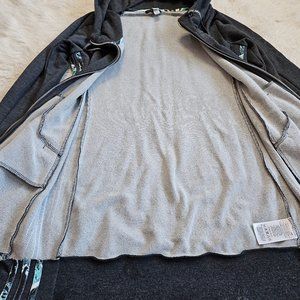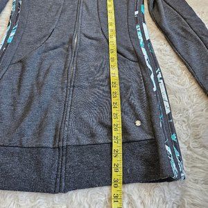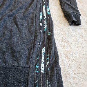 Adidas Neo Women's Grey/White/Aqua Stripped Trim Full Zip Hoodie Long Jacket S