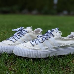 Limited Edition Adidas Nizza DG sneakers, rare Donald Glover/Childish Gambino collaboration. Off-White Men’s size 7 (women’s 8.5). Worn twice, in good condition. Comes with 3 sets of laces, still in original box.